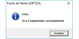 Con solo dar un click a la opción Compactar automáticamente genera este mensaje para saber que ya esta listo y se le da Aceptar.