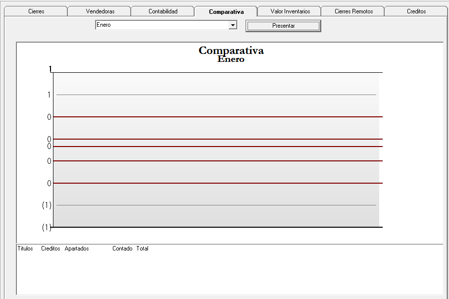 En esta pantalla en la pestaña Comparativa se puede ver de forma gráfica todos los movimientos de ventas por mes, con tal solo en la flecha selecciona el mes y en botón Presentar se da click y ya en la parte inferior se visualiza.