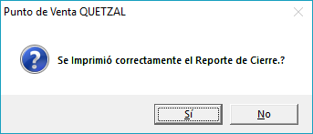 Si se desea reimprimir el cierre solo dar click a la casilla Imprimir Cierre y genera este mensaje y se le da SI y listo.