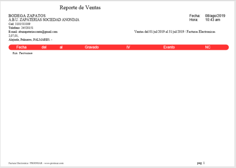 Al dar click a la casilla Exportar PDF este genera un archivo de PDF donde se visualiza el reporte de ventas por mes y por sucursal de todas las facturas electrónicas.