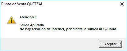 Si por alguna razón el sistema esta desconectado o pierde la señal de internet el mensaje de abajo es el que le va a indicar dicha situación.