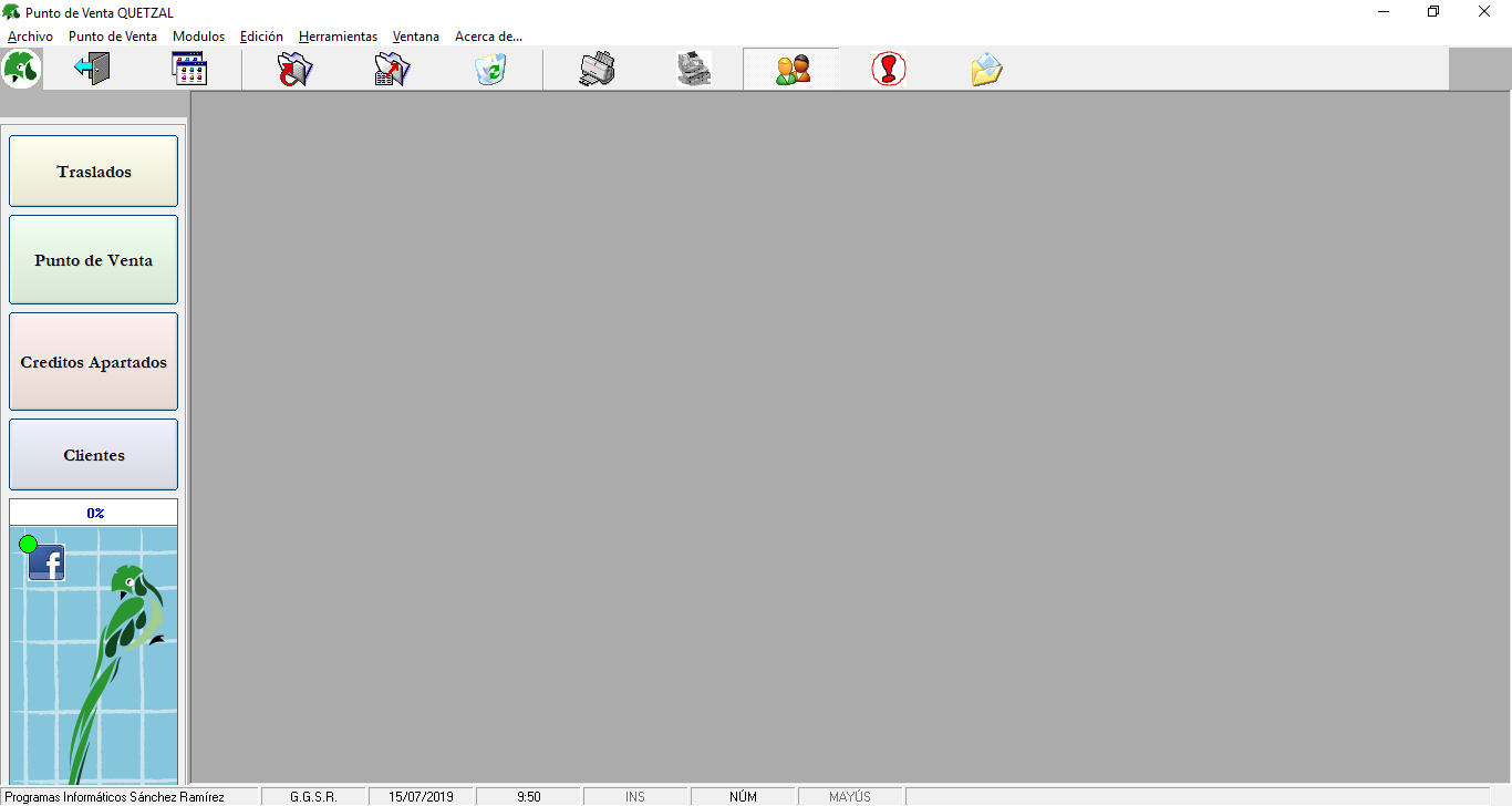 En esta imagen se observa la pantalla principal del sistema, donde a continuación se dará un resumen detallado de todas las funciones del mismo.