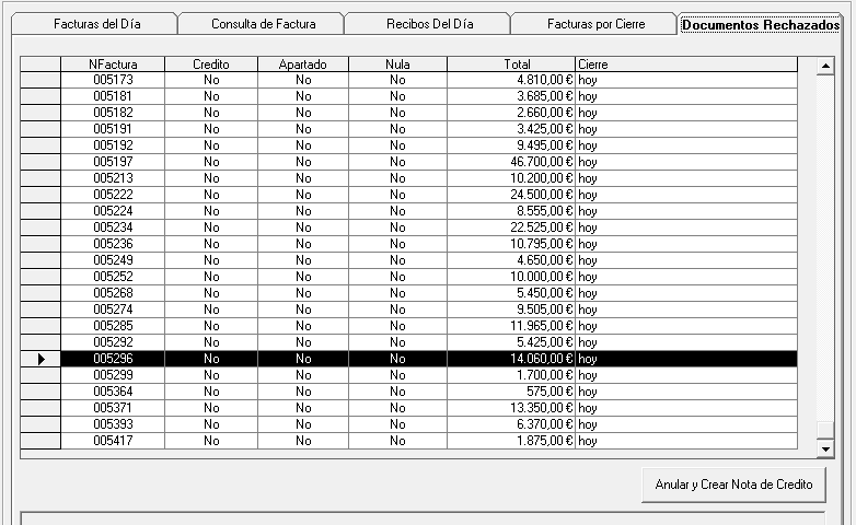 En esta pantalla en la pestaña Facturas del Día tiene la función de visualizar las ventas diarias con el monto de cada una, si se realizó en tarjeta o si es contado, crédito o apartado. También permite en el botón Anular Factura Seleccionada poder anular facturas si es necesario e imprimir en el botón correspondiente.