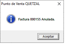 En esta pantalla en la pestaña Documentos Rechazados, muestra todos los documentos de xml que hacienda rechaza porque tienen algún error en los datos .La forma de solucionarlo es anular la factura y hacer una nota de crédito por lo que en la parte inferior tenemos ese botón al que se le da click y automáticamente genera un mensaje donde le pregunta si esta seguro de anular la factura con el número y el monto correspondiente se da click a Si y ya luego genera otra pantalla donde muestra todo lo que se compro, y por ultimo genera otro mensaje donde dice factura anulada y se le da click Aceptar para terminar el proceso y esta suba hacienda para corregirlo, si se tienen varios documentos tiene que aplicar el mismo método pero factura por factura .