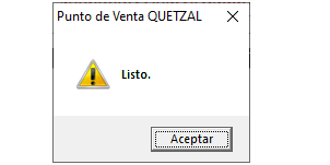 Al dar un click a la casilla Generar XML este es el mensaje que genera y se da click Aceptar .